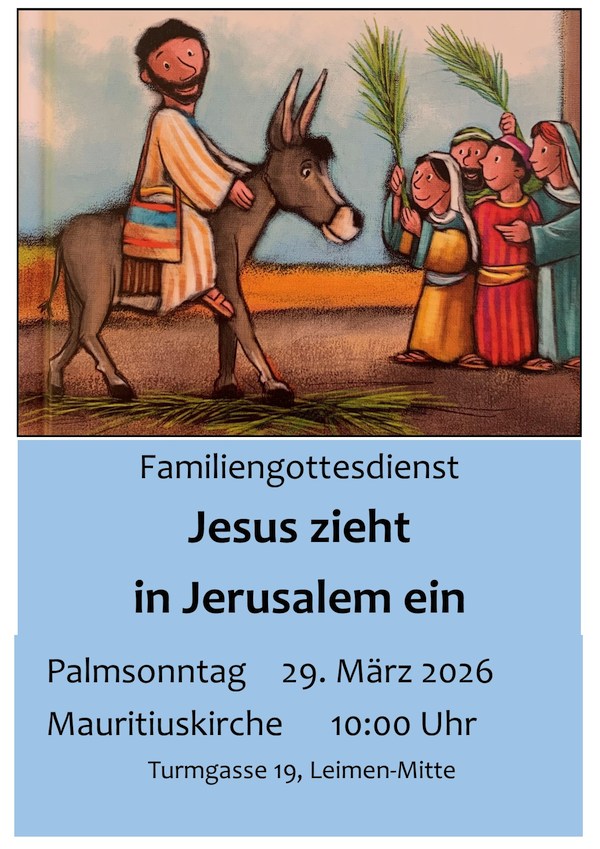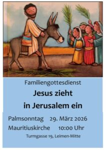 10.00 Uhr Familiengottesdienst zu Palmsonntag, Mauritiuskirche, Turmgasse 19, Pfarrerin Frey und Team