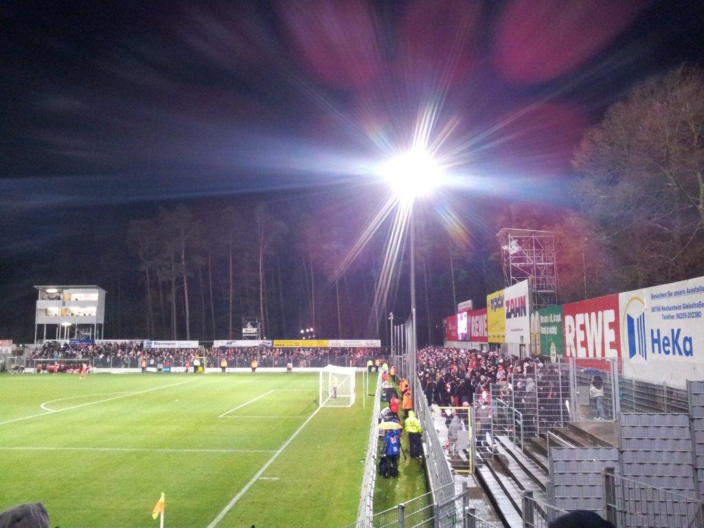 Über 6000 Zuschauer hatten an einem verregneten, kalten Freitagabend den Weg in´s Stadion gefunden – darunter aussergewöhnlich viele Gästefans, die Freitag Nachmittags die 250 km Fahrt aus Köln auf sich genommen haben. Freitag 18 Uhr ist nicht gerade eine Fanfreundliche Anstosszeit, sondern eine Zeit die für das Fernsehen eingerichtet wurde, damit die Zweitligaspiele getrennt zur Ersten Liga übertragen werden können.