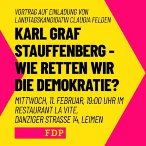 FDP-Landtagskandidatin Claudia Felden lädt ein zum Vortrag von Karl Graf Stauffenberg
