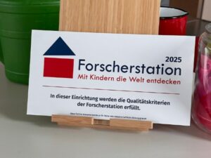 Dafür haben mindestens zwei pädagogische Fach- oder Lehrkräfte der Einrichtung erfolgreich an einer kostenlosen Fortbildungsreihe der Forscherstation teilgenommen, sich im Anschluss daran weiterqualifiziert oder im Rahmen kontinuierlich dokumentierter Lernumgebungen eine Verankerung früher naturwissenschaftlicher Bildung im Einrichtungsalltag belegt.