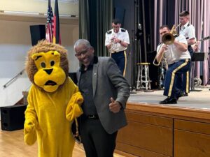 Ein echtes Highlight des Abends war der Auftritt des Lions Löwen, der sich einmal mehr als Publikumsliebling erwies. Mit viel Charme und sichtbarer Freude bewegte er sich durch die Reihen der Gäste, sorgte für zahlreiche Begegnungen und sammelte zusätzlich Spenden für den guten Zweck. Ob im Austausch mit Oberbürgermeister John Ehret, im Gespräch mit der Leiterin der Musikschule Nicole Staber oder gemeinsam mit Mitgliedern der US Army Band – der Lions Löwe war überall ein gern gesehener Botschafter des sozialen Engagements.