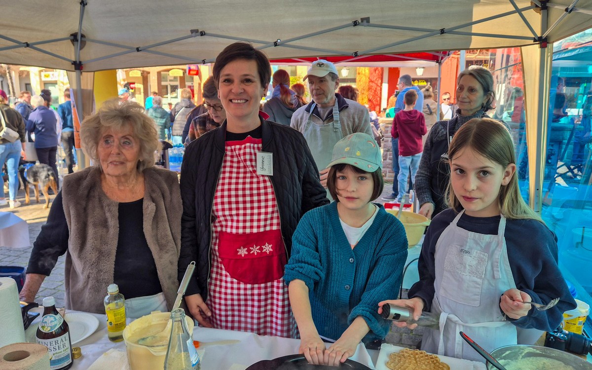 (rng – 6.3.26) War das wieder ein schönes Fest! Die Waffeleisen waren noch gar nicht richtig heiß, als die ersten Leimener und Leimenerinnen auf den Georgi-Marktplatz kamen. Das perfekte Frühlingswetter lockte offenbar die Menschen nach draußen, und die Aussicht auf eine frisch gebackene Waffel tat ihr Übriges. Beim 3. Waffelsonntag, zu dem Leimen Legt Los am 1. März eingeladen hatte, bildete sich eine Schlange, obwohl die neun Waffelbäcker und -bäckerinnen an elf Waffeleisen eine frische Waffel nach der anderen produzierten.