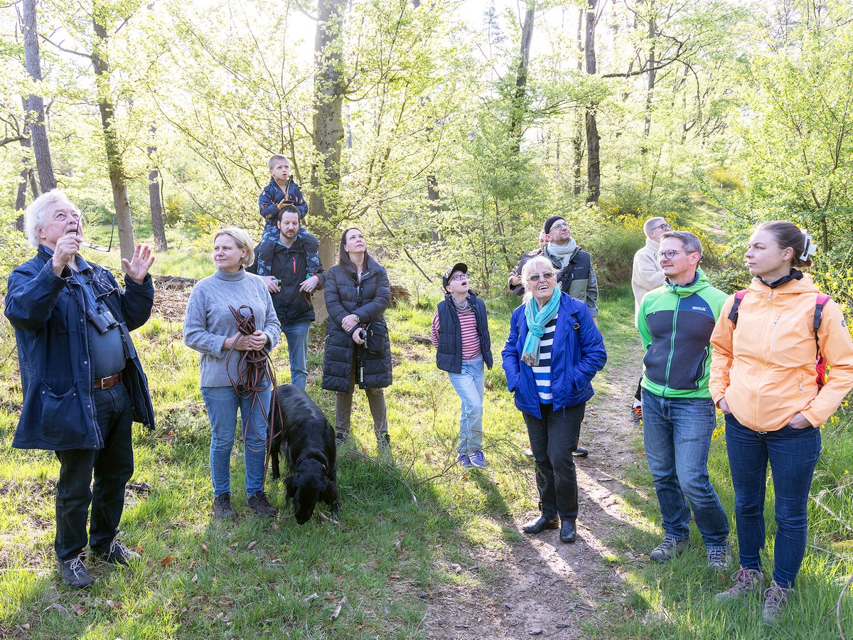 Was für andere ein wenig Gezwitscher im Hintergrund ist, ist für Michael Wink ein Konzert mit erkennbarem Dirigat. „Man sieht fast nichts, aber man hört alles“, erklärte er gleich zu Beginn der Wanderung. Und wie Recht er hatte: Schon nach wenigen Metern standen die Teilnehmenden mit gespitzten Ohren und staunenden Blicken im Unterholz, während Wink sie wie ein erfahrener Moderator durch das Frühkonzert der Natur führte.