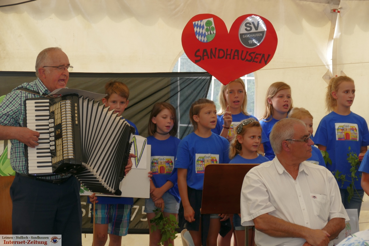 Erfahrene Zopferinnen und Zopfer bringen jedem, der mit-„arbeiten“ will, bei, wie man die Dolden richtig zopft. Das wichtigste ist dabei das „Schdiel draalosse!“, wie Bürgermeister-Stellvertreterin Eva Maria Eichler nochmals erklärte und selbst vorführte. Bereits seit Samstag morgen waren die fleißigen Helfer bei der Arbeit. Bevor gegen Mittag der traditionelle Faßanstich erfolgte, sang eine Klasse Schulkinder der Theodor-Heuss-Grundschule mit Akkordeon-Begleitung von Rudi Sailer das zum Anlaß bestens passende Sandhäuser Lied und zu den Klängen der vom MGV Germania gesungener Lieder gab es dann für die Zopferinnen und Zopfer ein frisches Bier.