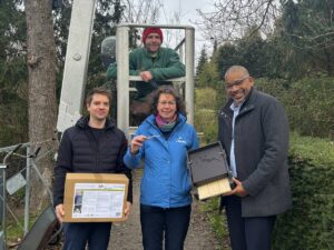 (20.3.26 – ih/np) Für die heimischen Fledermäuse ist der Leimener Friedhof nun ein sicherer Rückzugsort: Die Stadt Leimen hat dort mit Unterstützung des Landschafts-Erhaltungsverbands Rhein-Neckar e.V. und des NABU-Bezirksverbands Rhein-Neckar-Odenwald 10 Fledermauskästen installiert. Am Dienstag, dem 17. März 2026, wurden die Kästen von Alex Schäffner (Technische Betriebe Leimen), Klimaschutzmanager Magnus Wurmbach und Christiane Kranz (NABU-Bezirksverband) unter den Augen von Oberbürgermeister John Ehret angebracht. „Der Zeitpunkt ist ideal, da die Tiere Anfang April ihre Sommerquartiere suchen“, erklärte Magnus Wurmbach.