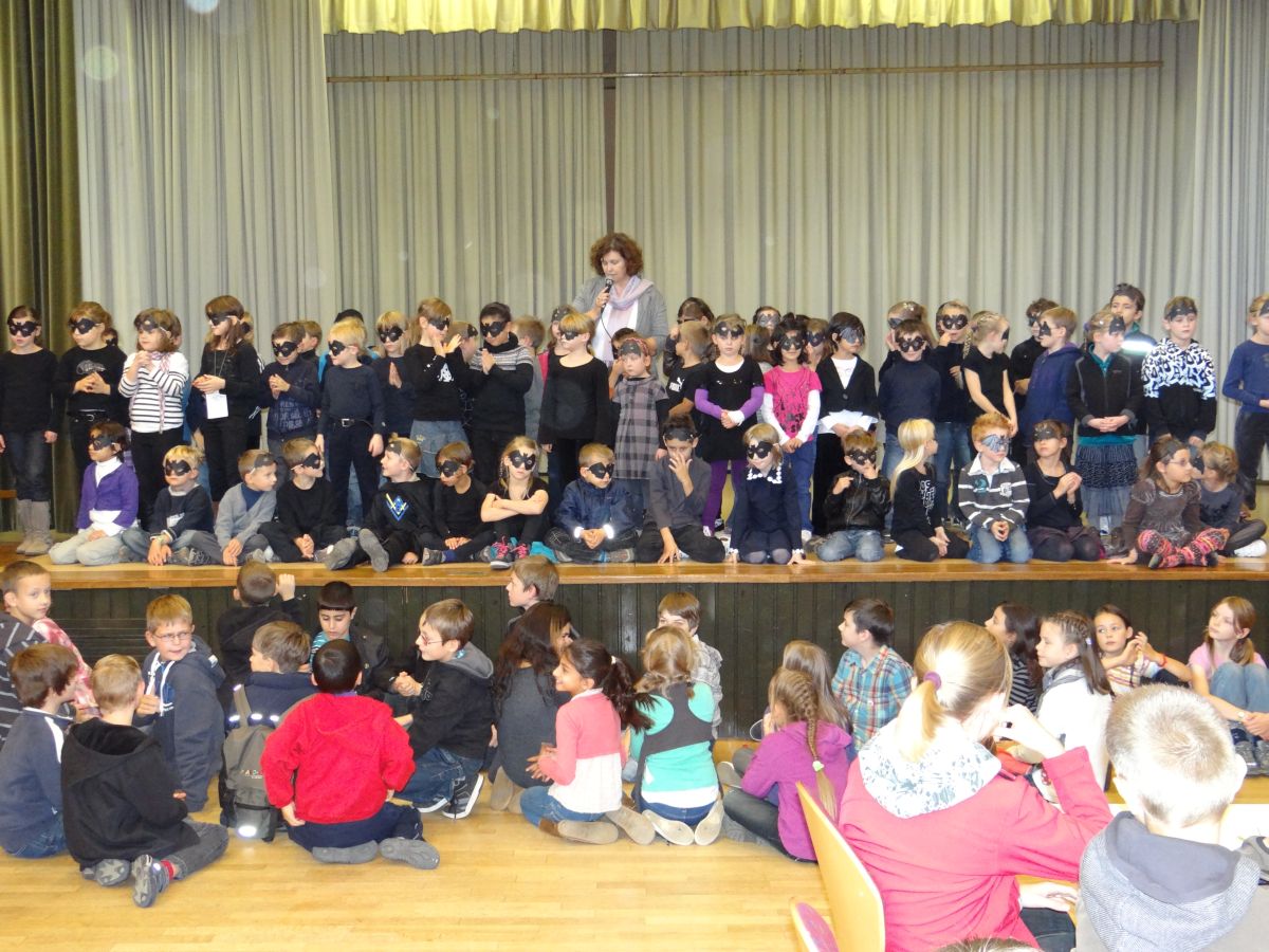 Es folgten „Dracula Rock“ (GSc/GSg) und „Whatever“ (Klasse 6a) bevor sich das Publikum den vielen Attraktionen zuwandte. Thematisch korrekt wurde ein Theaterstück mit dem bezeichnenden Titel „Auch Vampire brauchen Freunde!“ aufgeführt. Die schönste selbstgebastelte Fledermaus der Ausstellung wurde prämiert und in und um die GS wurden an vielen Stationen Vergnügungen angeboten.
