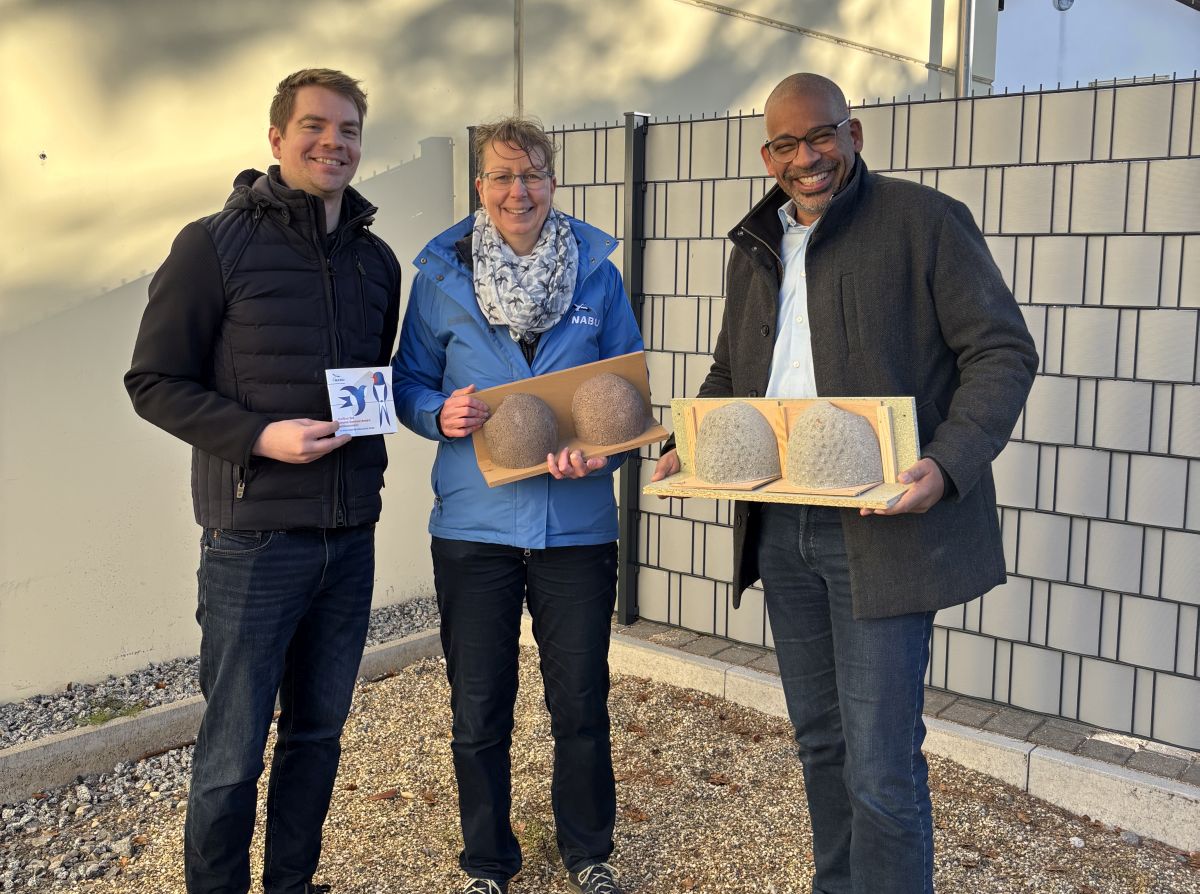 (8.4.2026) Getreu dem Motto „Wenn Schwalben am Haus brüten, geht das Glück nicht verloren“ hat der NABU Leimen-Nussloch gemeinsam mit dem Klimaschutzmanager der Stadt Leimen, Magnus Wurmbach, am Feuerwehrhaus in der Woche vor Ostern neue Nisthilfen für Mehlschwalben angebracht. Sie wollen den Schwalben damit „unter die Flügel greifen“, denn der Bestand an Schwalben geht immer weiter zurück.