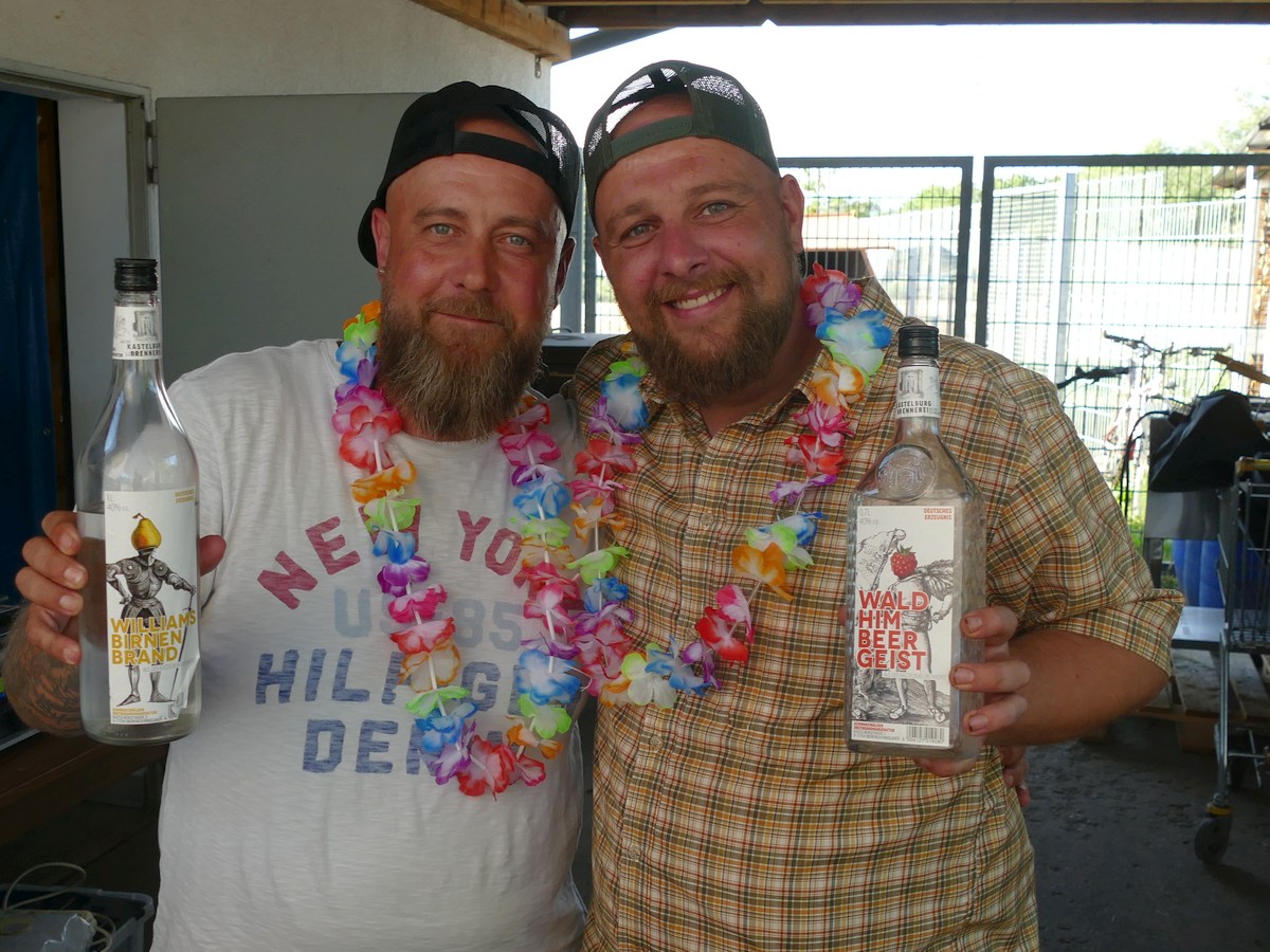 Christian und Steffen: Zwei, die wissen, wie man gute Laune mixt – mit Herz, Schnaps und Blumenketten beim Gockelfest in St. Ilgen.