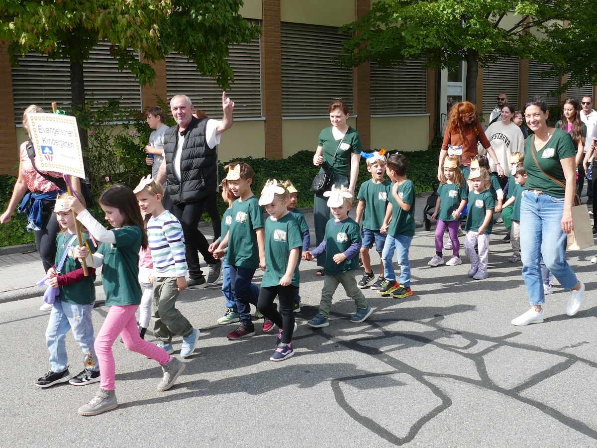 In einheitlichen grüen T-Shirts folgte der evangelische Kindergarten.