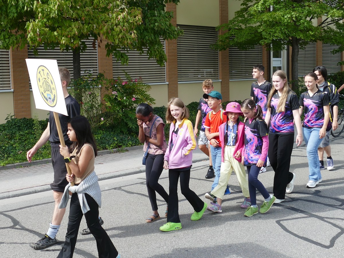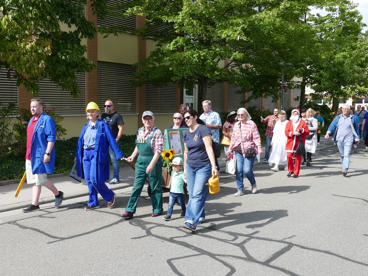Der Pestalozzi-Kindergarten folgte mit Pädagog:innen, Eltern und Kindern Seite an Seite, die Kleinsten oft noch im Buggy, die Größeren mit Sonnenblume in der Hand. Ein Bild zum Schmelzen – nicht nur für Großelternherzen.