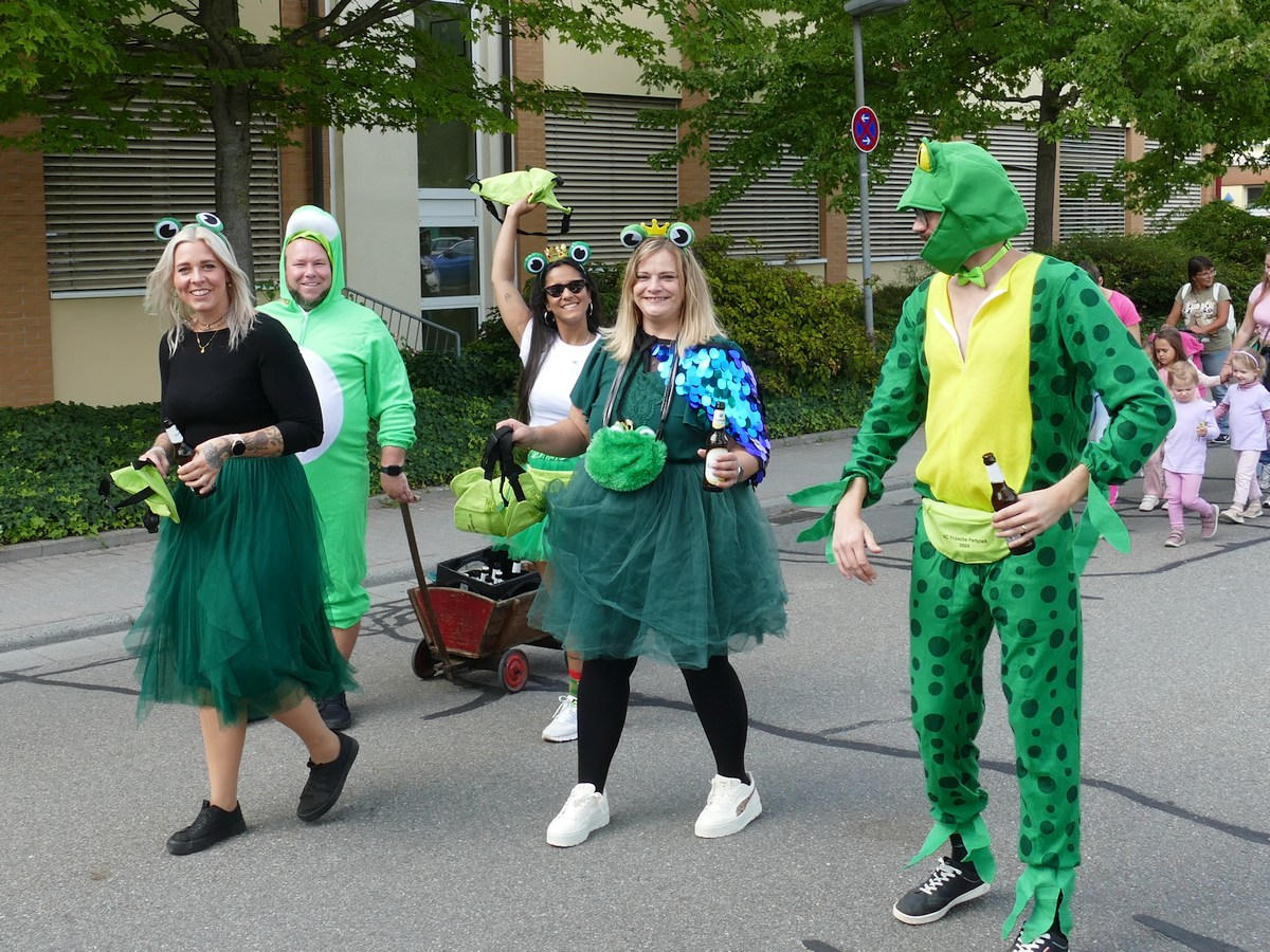 Dann wurde es grün und glubschäugig: Der KC Frösche St. Ilgen marschierte als quirliges Amphibienrudel vorbei. Mit Frösche-Kostümen, Tüllröcken, Pailletten und reichlich Humor brachten sie nicht nur Kinderaugen zum Glänzen. Man spürte: Hier springt nicht nur das Kostüm ins Auge, sondern auch das Herz.