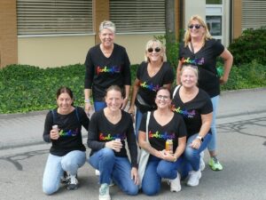 Die Tanzmamis der Frösche traten diesmal„Farbenfroh“ auf und machten diesem Namen alle Ehre – schwarzes Shirt, bunter Schriftzug, lachende Gesichter. Sie posierten für Fotos, lachten aus vollem Herzen und zeigten, dass Verbundenheit nicht viel braucht außer ein bisschen Farbe und ein offenes Miteinander.