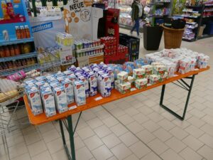 Auch die Platzierung war gut durchdacht: Direkt vor den Kassen bei EDEKA Walter stand ein Tisch mit Lebensmitteln, die von der Tafel besonders dringend benötigt werden. Ein letzter freundlicher Hinweis vor dem Bezahlen – und viele legten spontan noch etwas dazu. Klare Sache: Das hat geholfen.