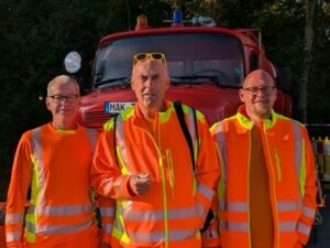 Neu in diesem Jahr war die gezielte Integration der Beifahrerinnen und Beifahrer in den Hindernisparcours. Beim Hindernis „Ringaufnahme mit Zielbremsung“ musste beispielsweise ein Stahlring durch die Beifahrerin oder den Beifahrer aufgenommen und nach der Zielbremsung in einen Behälter geworfen werden. Der hier geforderte Teamgeist ist auch im Straßenbetriebsdienst unerlässlich. Neben der Verantwortung für die Sicherheit der Verkehrsteilnehmenden gilt es, stets auf die eigene Sicherheit und die der Kolleginnen und Kollegen zu achten.