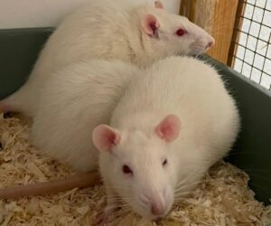 Dessen sind sich die Menschen oftmals nicht bewusst, wenn sie sich ein Haustier holen. Die drei Albino Ratten vom Tom-Tatze-Tierheim wurden einfach zurückgelassen. Sie sind im April 24 geboren und eine harmonische dreier Gruppe. Sie sind rattentypisch sehr neugierig und spielen gerne.