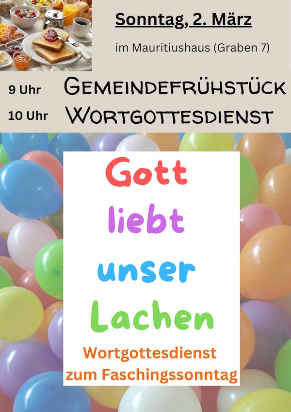 Im Anschluss wird um 10 Uhr ein Wortgottesdienst zum Faschingssonntag mit dem Thema „Gott liebt unser Lachen“ im Mauritiushaus gefeiert.