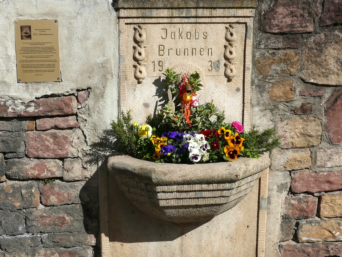 (fwu – 3.4.21) Der kleine, unscheinbare Jakobsbrunnen an der Heltenstraße ist bis auf seine Metalltafel, die interessierten Leimener Bürgern die Geschichte des Brunnens näherbringt, im Winter fast unsichtbar. Doch im Frühling verwandelt sich sein Aussehen, dank Inge Hess und der gegenüber wohnenden Anwohnerin Inge Oestringer. Sie kümmern sich ehrenamtlich um die Pflege und Bepflanzung des Kleinods, das viele Leimener mit schönen Kindheitserinnerungen verbinden. Jetzt zu Ostern können sich die Bürger an den ersten Frühlingsblühern erfreuen, denn der Jakobsbrunnen ist frisch festlich bepflanzt und geschmückt. Schön!
