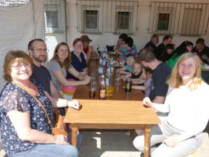 28 Grad zeigte das Thermometer – echtes Feiertagswetter! Nur die Sonne meinte es fast ein wenig zu gut. Da sich keine Sonnenschirme fanden, rückte man einfach unter das Vereinsdach oder in die Innenräume. Es wurde gelacht, geschwatzt, gespeist – eine gemütliche Stimmung wie aus dem Bilderbuch. Die Helferinnen und Helfer – gut ein halbes Dutzend – hatten alle Hände voll zu tun, um den Appetit der Gäste zu stillen.