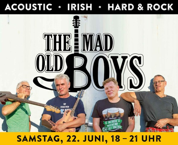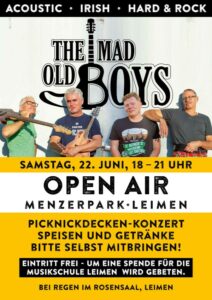 Zu sehen und zu hören gibt es die Mad Old Boys. Die vierköpfige Band besteht zu 50% aus Leimenern und ist dem einen oder anderen vielleicht von Auftritten in Pubs und Kneipen in und um Heidelberg bekannt. Schon seit 2017 unterhalten und begeistern die „verrückten alten Jungs“ mit ihrem abwechslungsreichen und zumeist mit akustischen Instrumenten gespielten Programm, in dem sich Klassiker der Rock- und Popgeschichte und Irish-Folk Songs die Hand reichen.