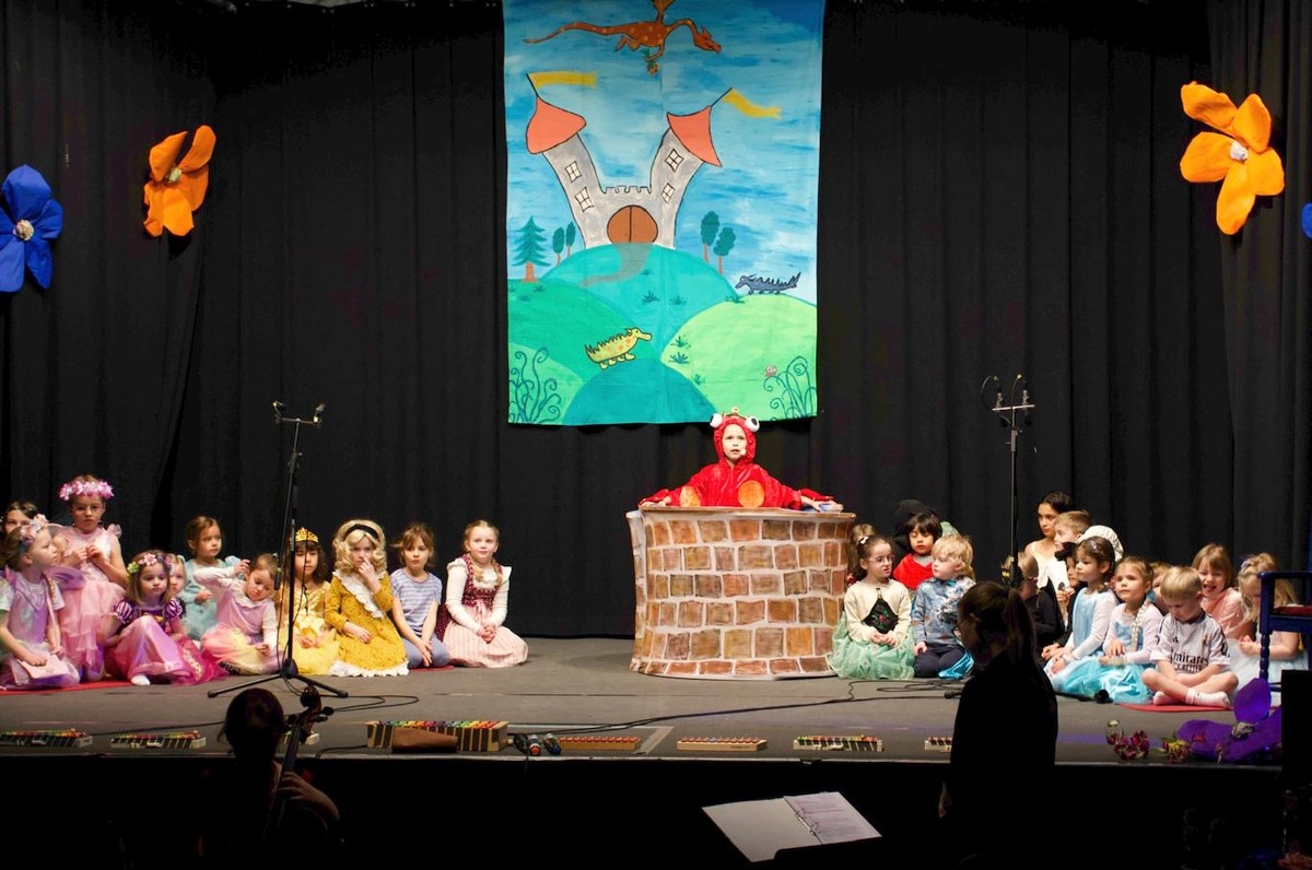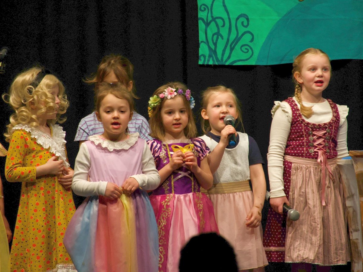Eröffnet wurde die Aufführung von Anna Linn Bitzer. Als Hofelf kommentierte sie zusammen mit Arvid Bitzer und Lias Schmitt das Geschehen auf der Bühne, was für den ein oder anderen Lacher im Publikum sorgte. Die Kinder der musikalischen Grundausbildung zeigten bei der Ouvertüre ihr Können an den Glockenspielen.