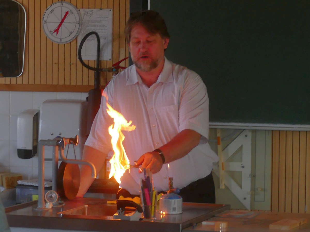 Ein besonderer Höhepunkt der heutigen Veranstaltung war die Demonstration eines Experiments durch Herrn Rupp, den Rektor der Schillerschule. Er zeigte den Anwesenden das sogenannte Feuerdreieck, um anschaulich zu erklären, wie das Geld für die Forscherstation verwendet wird. Später erläuterte Herr Rupp, dass die Schillerschule plant, mit Hilfe der Spenden die Forscherstation der Schillerschule weiter auszubauen. Ziel ist es, in etwa zwei bis drei Jahren Materialien bereitzustellen, die von umliegenden Schulen ausgeliehen werden können. So sollen auch Schüler anderer Schulen die Möglichkeit erhalten außerhalb des regulären Lehrplans spannende Versuche durchzuführen und naturwissenschaftliche Themen praktisch zu erleben.