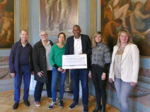 (20.11.2024 mu) Im Spiegelsaal im Leimener Rathaus empfing Oberbürgermeister John Ehret am 19. November 2024 Vertreter der Lions-Clubs, die mit einer großzügigen Spende über 1.000 € der Musikschule Leimen die Anschaffung schon lange schmerzlich vermisster Gegenstände für den Musikunterricht der kleinen Künstlerinnen und Künstler ermöglichte.