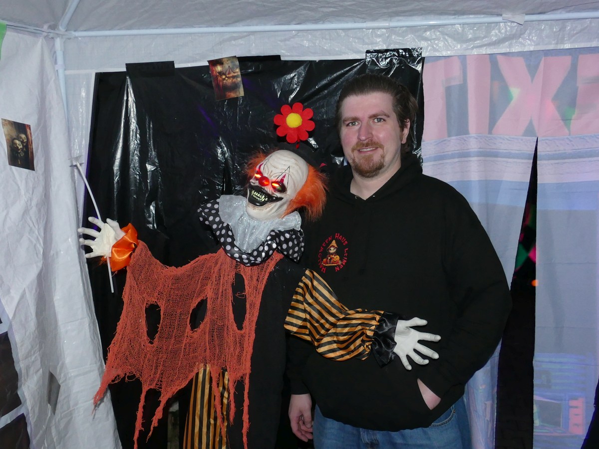 André Grädler steht in seinem Vorgarten, das Gesicht im blauen Scheinwerferlicht, und wirkt zufrieden. Neben ihm grinst ein Clown mit glühend roten Augen, dessen Zähne selbst einem Zahnarzt den Appetit verderben würden. Die beiden geben ein gutes Duo ab: der Hausherr mit schwarzem Hoodie und das leuchtende Monstrum im Zirkusfummel. Wer hier vorbeikommt, ahnt – das wird kein normaler Dienstagabend.