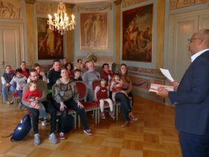 Den praktischen Auftakt bildete eine Aktion direkt am Bauzaun „Treffpunkt Leimen“ in der Bürgermeister-Lingg-Straße. Wie gut das neue Design ankommt, zeigte das Suchspiel „Wo habe ich mich versteckt?“: Auf großen Wimmelbildern suchten Kinder nach dem neuen Maskottchen. Zahlreiche kleine Detektive schickten ihre Ergebnisse und selbstgemalten Bilder an das Rathaus.