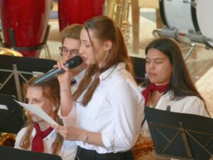 Die Moderation für das große Orchester hatten die Musikerinnen Lisa Gailfuss und Tamara Sonnleitner übernommen und die Zuschauer informativ unterhalten.