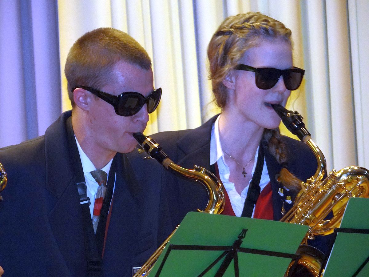 er vom 1. Vorsitzenden Moritz Berger eröffnete Konzertabend begann mit den Jüngsten, die unter dem Taktstock von Jugendleiterin Ola Pfaff den Besuchern ein erstes fröhliches Lächeln in die Gesichter zauberten. Sie brachten ihren Gesang und die Blockflötenkläge zwar noch deutlich dissonant aber dafür mit umsomehr Spaß und Begeisterung an der Musik dar und das Publikum freute sich mit ihnen und spendete tüchtig Beifall. Was aus solch musikalischen Anfängen dann unter der kundiger Anleitung entsteht, zeigt anschließend das Saxophonquartett (Nicole Pfaff, Philip Riffelt, Willi Pfaff, Katharina Unverfehrt) mit dem Stück „Pink Panther“. Katharina Unverfehrt ist ja bereits vor fast einem Jahr zur Jugenddirigentin aufgestiegen.