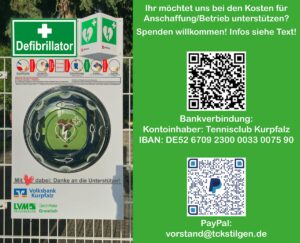 Dieses Investment sieht der Verein als Dienst am Wohle der Gesellschaft  – denn Herzsicherheit ist kein Zustand, sondern eine Entscheidung – für Wissen, Verantwortung und Gemeinschaft! Nichtsdestotrotz würde sich der TC Kurpfalz natürlich darüber freuen, wenn sich noch weitere „Herzensmenschen“ finden, die ihn bei diesem Projekt unterstützen und dabei helfen, die Kosten auf mehrere Schultern zu verteilen! Mit „Herz“ dabei sind bisher schon die Volksbank Kurpfalz und die LVM-Versicherungsagentur von Herrn Gerd-Peter Gramlich! Seid auch ihr mit „Herz“ dabei!