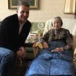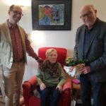 Oberbürgermeister Hans Reinwald gratulierte dem rüstigen Jubilar persönlich und überreichte neben der Urkunde des Ministerpräsidenten des Landes Baden–Württemberg einen Blumenkorb.