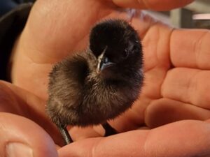 Nebenan sind auch andere Gehege vom Frühling erfüllt. Die Bilder zeigen etwa das pechschwarze Cemani-Küken, das behutsam in zwei Händen gehalten wird – ein Moment, der die Zerbrechlichkeit und zugleich den Zauber neuen Lebens einfängt. Ein weiteres Foto zeigt ein Kaninchen im österlich geschmückten Gehege, das sich scheinbar neugierig in Szene setzt. Auch die kleinen Husumer-Ferkel und ein junges Trampeltier bringen frischen Wind auf den Bauernhofbereich des Zoos.