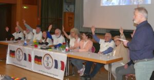 Zu Beginn gedachte die Versammlung der Verstorbenen mit einer Gedenkminute. Dabei ging der Blick besonders nach Tigy, in die französische Partnergemeinde. Dort war vor Kurzem Bürgermeister Noël Le Goff verstorben. Sein Tod hat auch in Leimen und St. Ilgen Betroffenheit ausgelöst. Le Goff stand seit 2014 an der Spitze der Gemeinde Tigy und wurde 2022 für seine Verdienste um die Partnerschaft mit der Partnerschaftsmedaille in Gold ausgezeichnet.