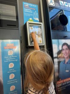 Dank des Engagements von Herrn Petri (Papa von Mariella aus der Igelgruppe) haben wir vor einiger Zeit die Möglichkeit bekommen, bei Aldi eine Spendenbox für Pfandbons aufzustellen. Diese hängt direkt zwischen den Pfandautomaten und ist mit unserem bekannten „Ding-Logo“ gekennzeichnet. Kunden können hier ihre Pfandbons einwerfen. Alle 6-8 Wochen schlendern die Igel-Kinder zum Aldi und leeren die Box, so auch heute und wir freuten uns wieder über eine Spende von 95,50€. Herzlichen Dank an dieser Stelle an alle Leimener die, diese tolle Aktion unterstützen.