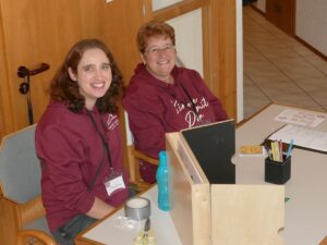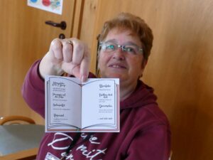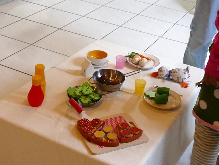 Beim „Tischlein deck dich!“ war gutes Beobachten gefragt. Auf einem Tisch waren eine Vielzahl von Speisen und Getränken platziert. Man musste sich alles merken, zu einer Wand gehen, das Bild vom Tisch finden, dann an den Tisch zurückgehen und suchen, was fehlte, denn ein Teil war zwischenzeitlich von einer Betreuungskraft an der Stadtion entfernt worden. Also so eine Art 3D-Memory.