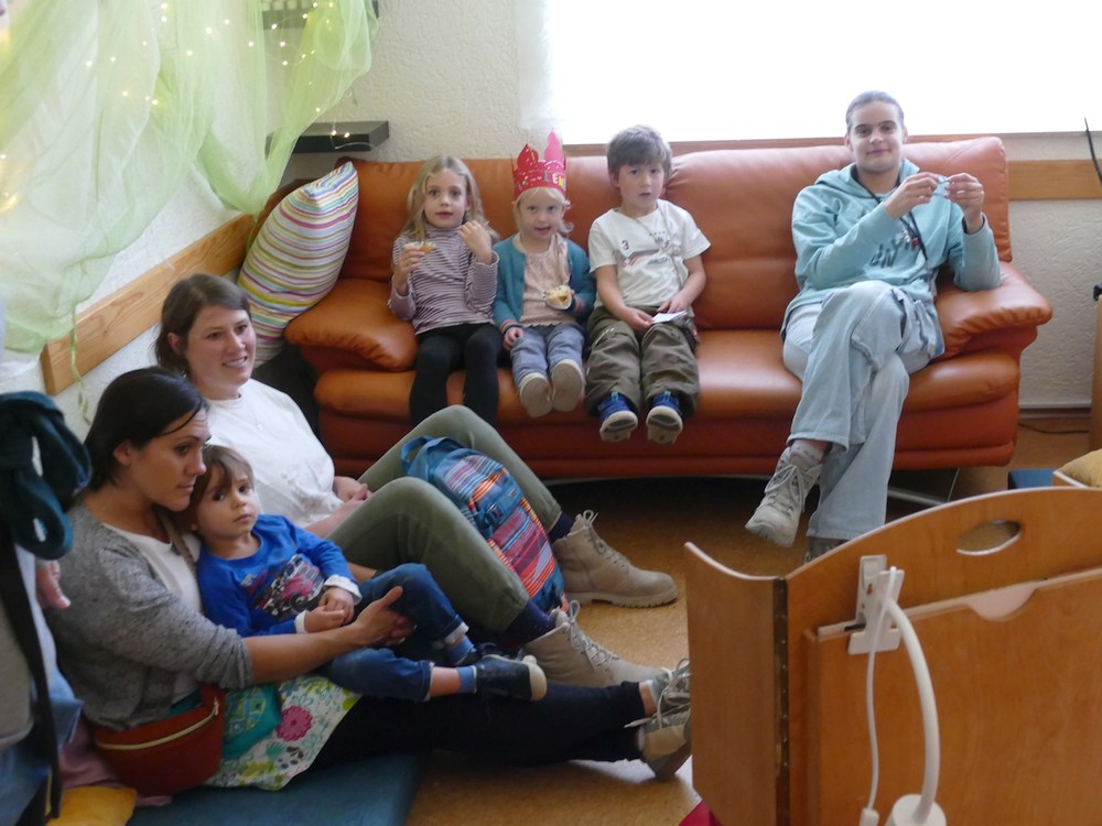 Zur Erholung vom anstrengenden Märchenparcours gab es außerdem einen Geschichtenraum, in dem vorgelesen wurde (natürlich Märchen!), eine Bastel- und Verpflegungsstation. Das ganze Haus war ein volles Gewusel von Eltern mit Kindern und Betreuern.