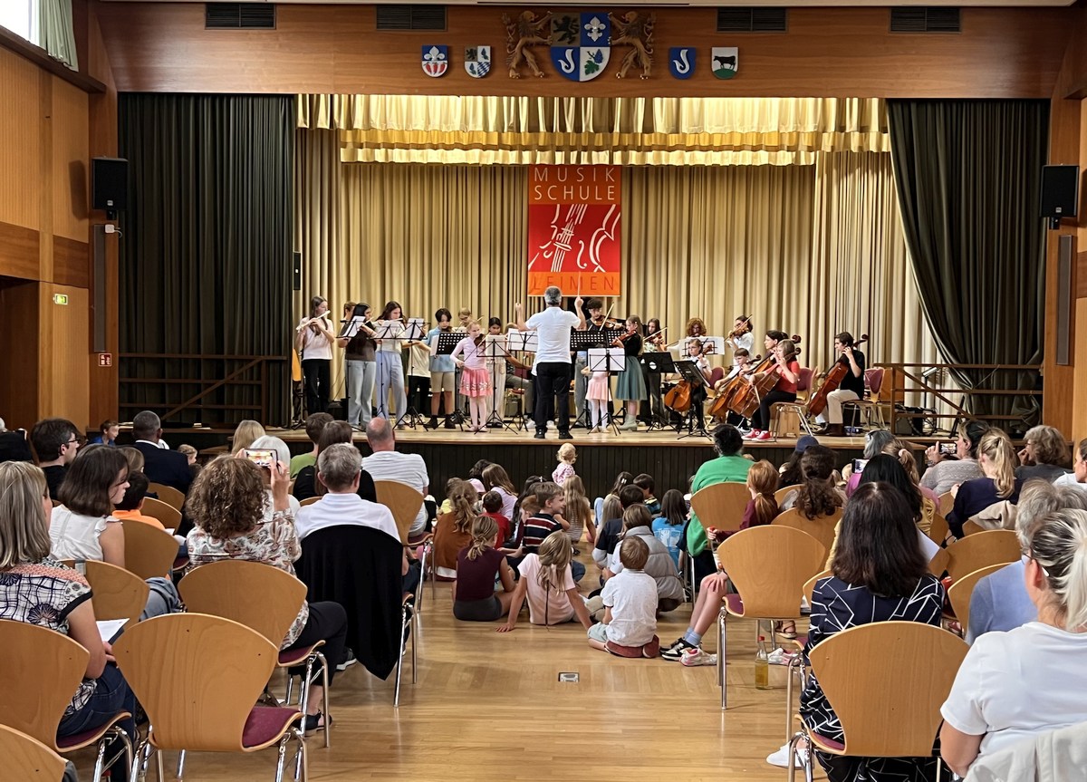 Unter den Gästen waren auch der 1. Vorsitzende der Musikschule OB John Ehret und die 2. Vorsitzende Bürgermeisterin Claudia Felden. Nach der Begrüßung durch Musikschulleiterin Nicole Staber und Nathalie Müller vom Förderverein präsentierten die Orchester, verschiedene Ensembles, die Chöre, die Rockband und verschiedene Ballettgruppen ein abwechslungsreiches Programm. Die musikalischen Darbietungen reichten von klassischen Werken über moderne Pop- und Rocktitel bis hin zu tänzerisch interpretierten Musikstücken.