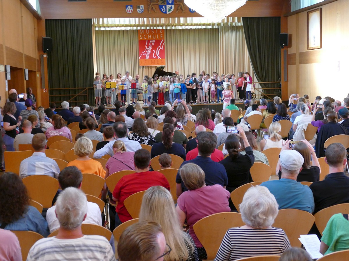 Besonderen Applaus bekam die Rockband der Musikschule unter der Leitung von Humberto Colacio, die mit ihrem Sänger Connor Schäfer mit energiegeladenen Songs wie „Should I stay or should I go“ von The Clash für einen grandiosen Ausklang sorgte. Mit dem Klassiker „Stand by me“ von Ben E. Kings, unterstützt von den Young Voices und einem großen Gitarrenensemble, verabschiedete sich die Musikschule in die wohlverdienten Sommerferien.