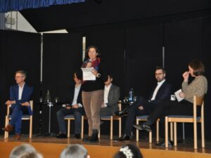 Jutta Mattern bedankte sich im Namen des Bündnisses bei den Abgeordneten und verabschiedete das Publikum mit einer kleinen Arbeitsaufgabe: Am Ausgang gab es kleine Karten mit Schokoherzen, die am Valentinstag an Menschen verteilt werden sollen, um sie davon zu überzeugen, am 23. Februar wählen zu gehen!