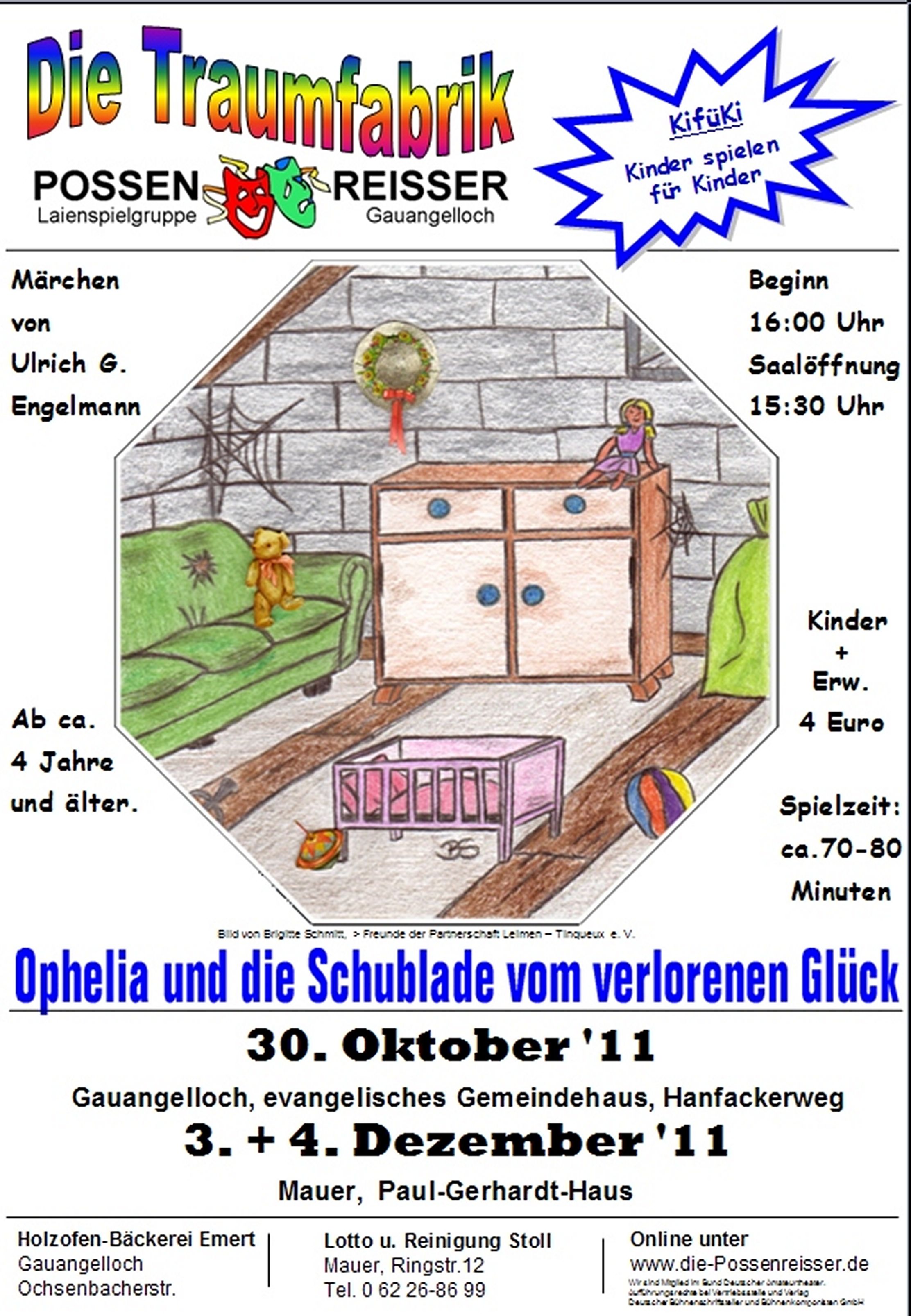 Das Premierendatum ist am Sonntag, den 30.10.11 um 16.00 Uhr im evang. Gemeindehaus in Gauangelloch.