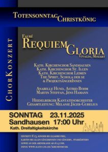 Am letzten Sonntag des Kirchenjahres laden wir Sie herzlich zu einem besonderen Konzert ein, das Gegensätze verbindet: Requiem und Gloria, Trauer und Lobgesang, Vergänglichkeit und Hoffnung.