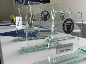 Neben den sportlichen Erfolgen standen auch Ehrungen für langjährige und besonders engagierte Mitglieder im Mittelpunkt. Heike Rau erhielt für ihre zehnjährige Tätigkeit im Vorstand als Schwimmwartin die Bronzene Kulturplakette der Stadt Leimen. Mit großem Einsatz und viel Herzblut hat sie in dieser Zeit zahlreiche Projekte ins Leben gerufen, erfolgreich umgesetzt und den Schwimmsport im Verein entscheidend mitgeprägt. Der SK Neptun Leimen bedankt sich herzlich für ihr langjähriges Engagement und ihre große Unterstützung.