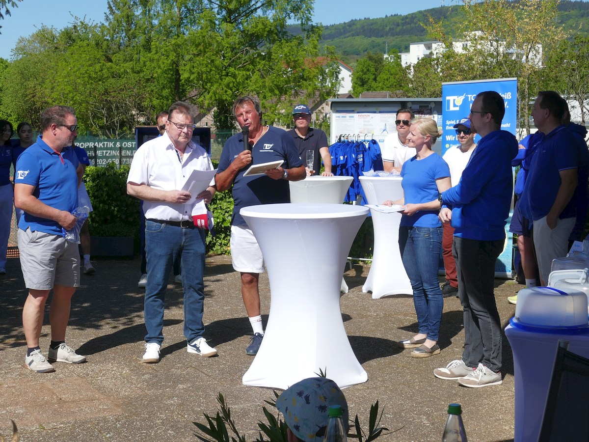 (pan – 28.4.26) Letzten Samstag lud der TC Blau-Weiß Leimen bei herrlichem Sommerwetter zur Saisoneröffnung ein. Vorstandsvorsitzender Thomas Ehrnhöfer hieß die zahlreich gekommenen großen und kleinen Mitglieder willkommen und gab die Sandplätze offiziell mit der Bitte frei, die Plätze in den ersten Wochen schonend zu behandeln und zu pflegen. Auch der frisch gebackene Ehrenpräsident Volker Raule war anwesend und erhielt nach der Ernennung bei der Jahreshauptversammlung im Februar bei dieser Gelegenheit seine dazugehörige Urkunde mit vielen persönlichen Dankesworten für seine großen Verdienste um den Verein.