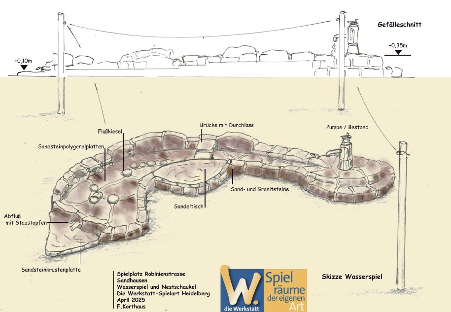 Die Skizze des künftigen Wasserspiels lässt den Spielspaß bereits erahnen. Die Fachfirma Die Werkstatt eG aus Heidelberg hat die Planung übernommen. Foto: Die Werkstatt-Spielart Heidelberg