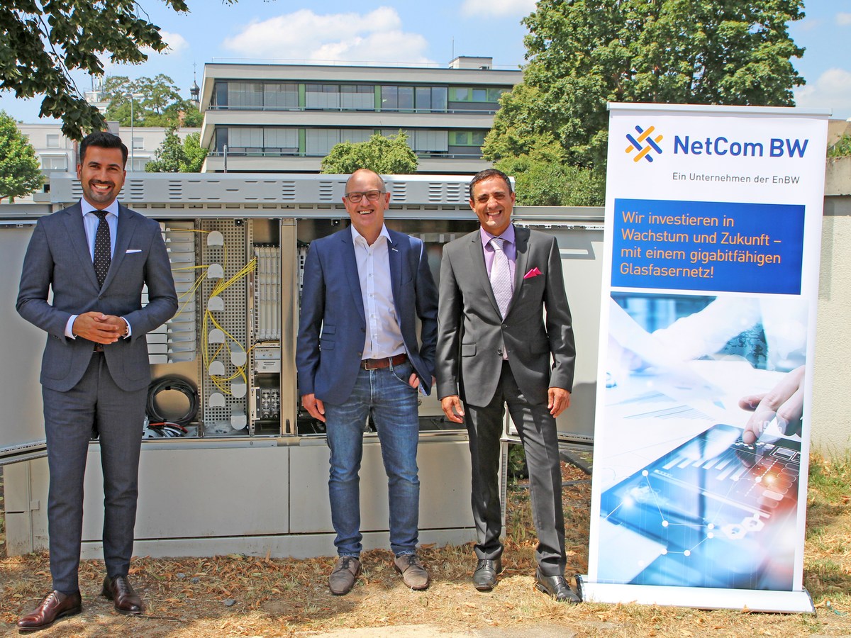 (jd – 28.7.22) Der Breitbandausbau in Sandhausen schreitet gut voran: Nachdem Ende des vergangenen Jahres bereits das Rathaus an das weltweite Glasfasernetz angebunden werden konnte, sind nun insgesamt sieben kommunale Einrichtungen komplett angeschlossen und in Betrieb – neben dem Rathausgebäude sind dies das Friedrich-Ebert-Gymnasium, die Friedrich-Ebert-Werkrealschule, die Gemeindebibliothek, die Theodor-Heuss-Grundschule, die Pestalozzischule und der Anne-Frank-Kindergarten. Bürgermeister Hakan Günes, Ralf Strohecker, Kommunalberater der Netze BW, und Giacomo Stifanelli, Account Manager der NetCom BW, lobten bei einem Treffen die gute Zusammenarbeit zwischen Gemeinde, Netze BW, NetCom BW GmbH, dem kommunalen Zweckverband fibernet.rn und den beauftragten Baufirmen.