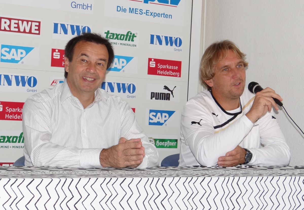 Otmar Schork (Geschäftsführer), Gerd Dais (Trainer) - während der Pressekonferenz am Donnerstag