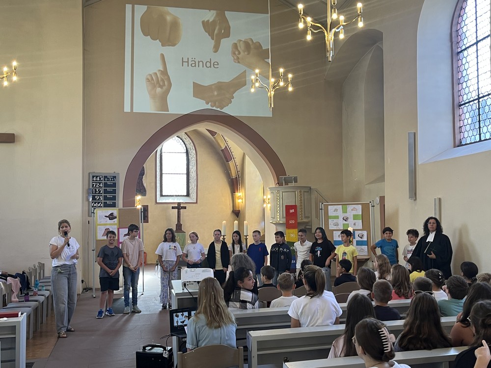 In Liedern, Texten und kleinen Anspielen wurde deutlich, was Hände alles bewirken können: helfen, trösten, begrüßen, schützen und gestalten. Die Kinder brachten ihre eigenen Gedanken ein und überlegten, wie sie mit ihren Händen Gutes tun können – in der Schule, zu Hause und auf ihrem weiteren Weg.