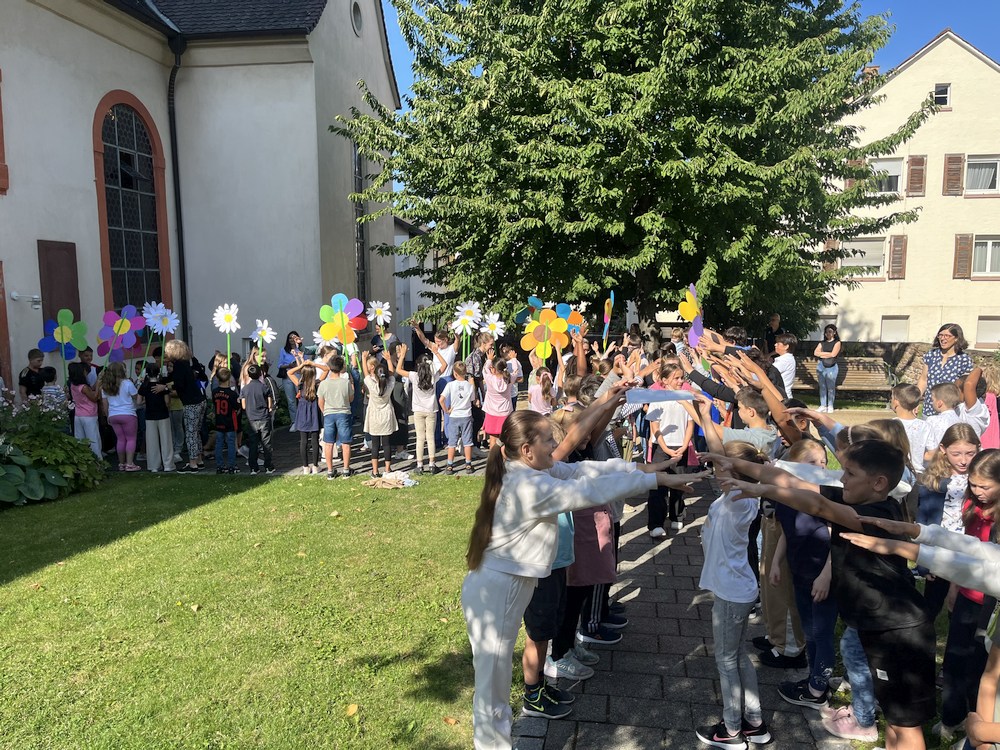 Zum Abschluss erwartete die Kinder eine schöne Überraschung: Die jüngeren Klassen standen Spalier und verabschiedeten die Großen mit bunten Basteleien und vielen guten Wünschen. Dieser Moment war für alle sehr bewegend – ein wertschätzender und fröhlicher Abschied von der Turmschulzeit.