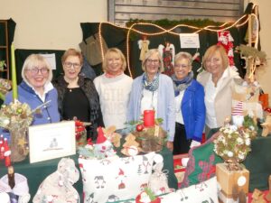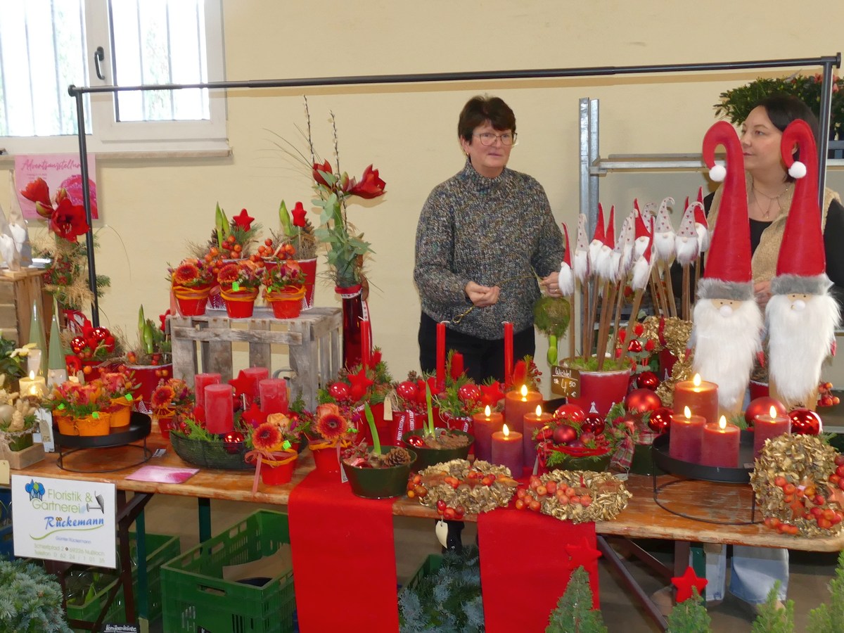 Blumen Rückemann mit Adventsgestecken, die Leimener Mittwochsgruppe (die kommenden Sonntag ihren eigenen Adventsbasar in der Aegidiushalle St. Ilgen hat!) mit vielerlei Handarbeiten, Vilou Schmuck mit Accessoires und Ibus mit Ölivenölprodukten.
